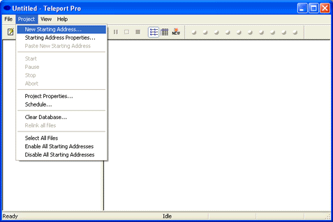 Launch Teleport Pro and, from the Project menu, choose New Starting Address